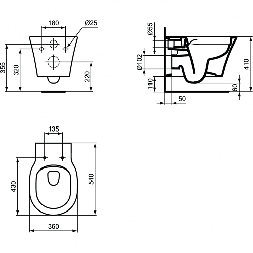 Чаша унитаза Ideal Standard E228801 Connect Air Rimless+ подвесного 36х54 см, Euro White (евробелый) купить по доступной цене