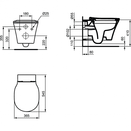 CONNECT AIR Rimless Безободковый Подвесной унитаз, технология cмыва Rimless, полностью скрытый крепеж, с крепежом TT0299598, с сидением и крышкой с функцией плавного закрытия E036801, дюропласт. Инновационная технология смыва Rimless обеспечивает идеальное качество смыв.Отсутствует нависающий обод, благодаря чему вода поступает с верхней точки чаши, обеспечивая 100% чистый смыв по всей поверхности Единый канал под высоким давлением создает каскад воды, которая омывает всю чашу. Две сильных струи в передней части унитаза без труда уносят твердые фракции. Гарантируется тщательный смыв бактерий без негигиеничного разбрызгивания. Процесс уборки более легкий благодаря отсутствию ободка.