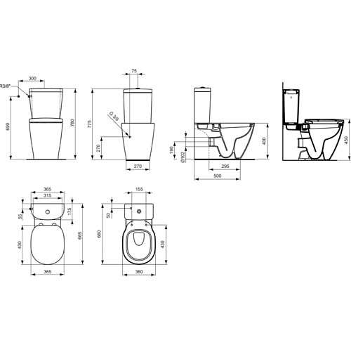 Чаша унитаза Ideal Standard E803701 Connect напольного/приставного 37х67 см, Euro White (евробелый)