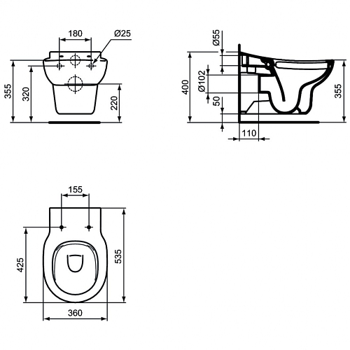 CONTOUR 21 Rimless Подвесной безободковый унитаз для детей от 7 лет, высота монтажа 355 мм, с крепежом TT0299327, для монтажа с сидением S4545 или сидением и крышкой S4536.