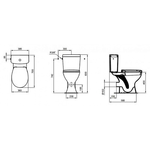 Чаша унитаза Ideal Standard E883201 Simplicity напольного 37х54 см, для монтажа с бачком, Euro White (евробелый) купить по доступной цене