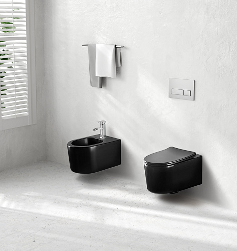 Унитаз-компакт Aquatek AQ2004-MB Мия безободковый 49х37 см, тонкое сиденье с механизмом плавного закрывания, черный матовый