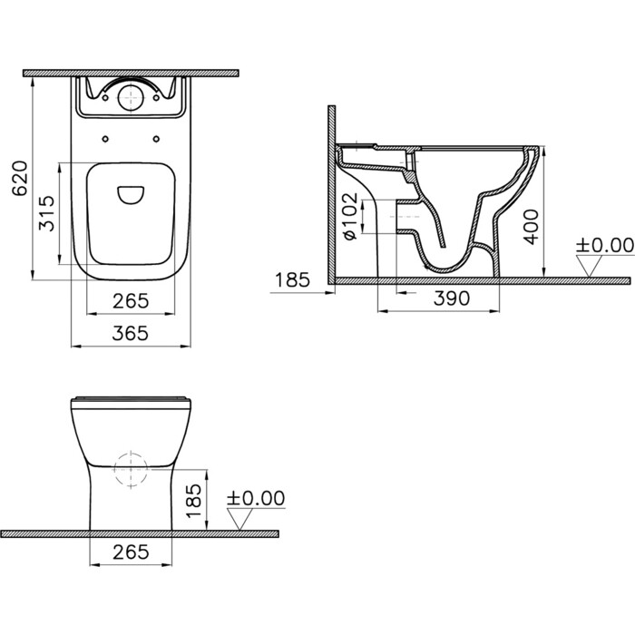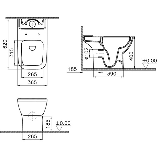 Унитаз-компакт Vitra 9833B003-7205 Integra Square Open-Back напольный 37х62 см, с тонким сиденьем, белый