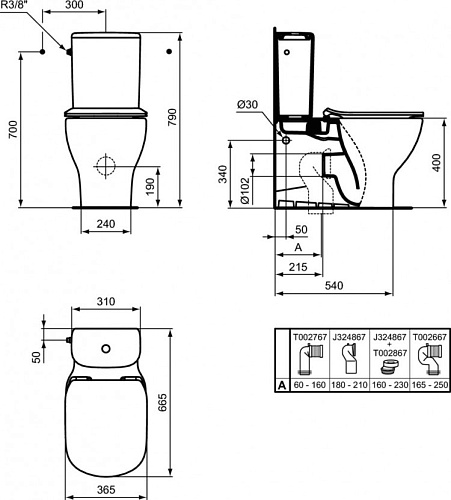 T3568V1 - TESI Бачок для унитаза (нижняя подводка);