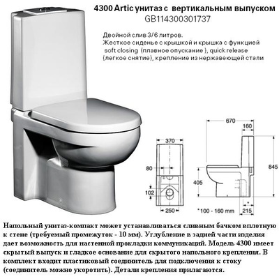 Унитаз напольный с бачком и сиденьем Roca ARTIC GB114300301737 купить по доступной цене