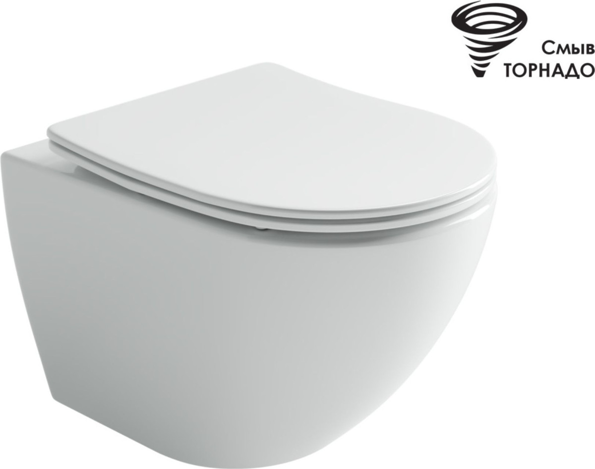 Унитаз подвесной безободковый Ceramicanova Metropol CN4002T, смыв Торнадо, с крышкой-сиденьем, белый