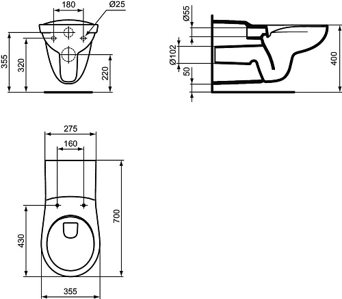 Чаша унитаза Ideal Standard S034801 Tesi подвесного 35х70 см, для инвалидов, White (белый)