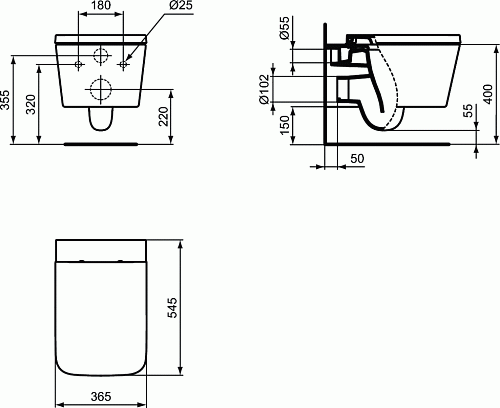 Чаша унитаза Ideal Standard T368601 Blend Cube подвесного 35х54 см, белый