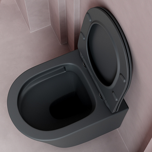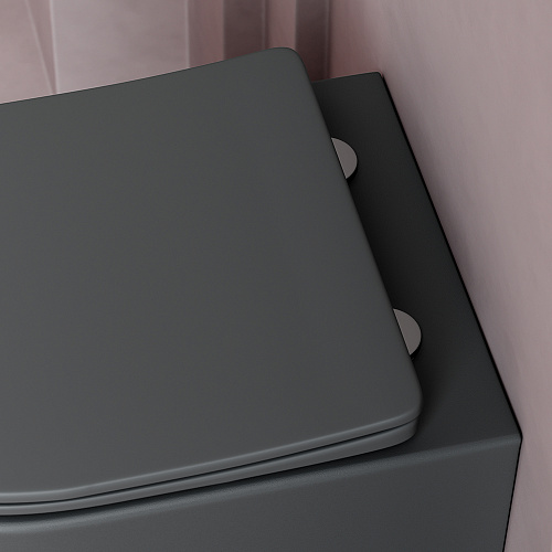 Унитаз Ceramica Nova CN6000MDH Balearica Rimless подвесной, 36.5х49 см, глубокий смыв, с ультра тонкой крышкой-сиденьем, темный антрацит матовый