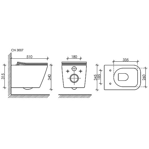 Унитаз Ceramica Nova CN3007 Metric Rimless подвесной, 34.5х51 см, глубокий смыв, с ультра тонкой крышкой-сиденьем, белый