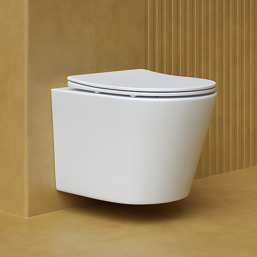Унитаз Ceramica Nova CN6000MW Balearica Rimless подвесной, 36.5х49 см, глубокий смыв, с ультра тонкой крышкой-сиденьем, белый матовый