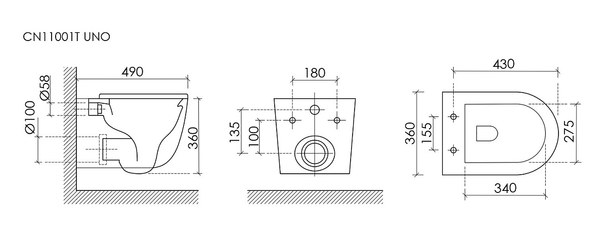 Унитаз подвесной безободковый Ceramicanova Uno CN11001TMB, смыв Торнадо, с крышкой-сиденьем, чёрный матовый