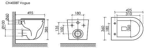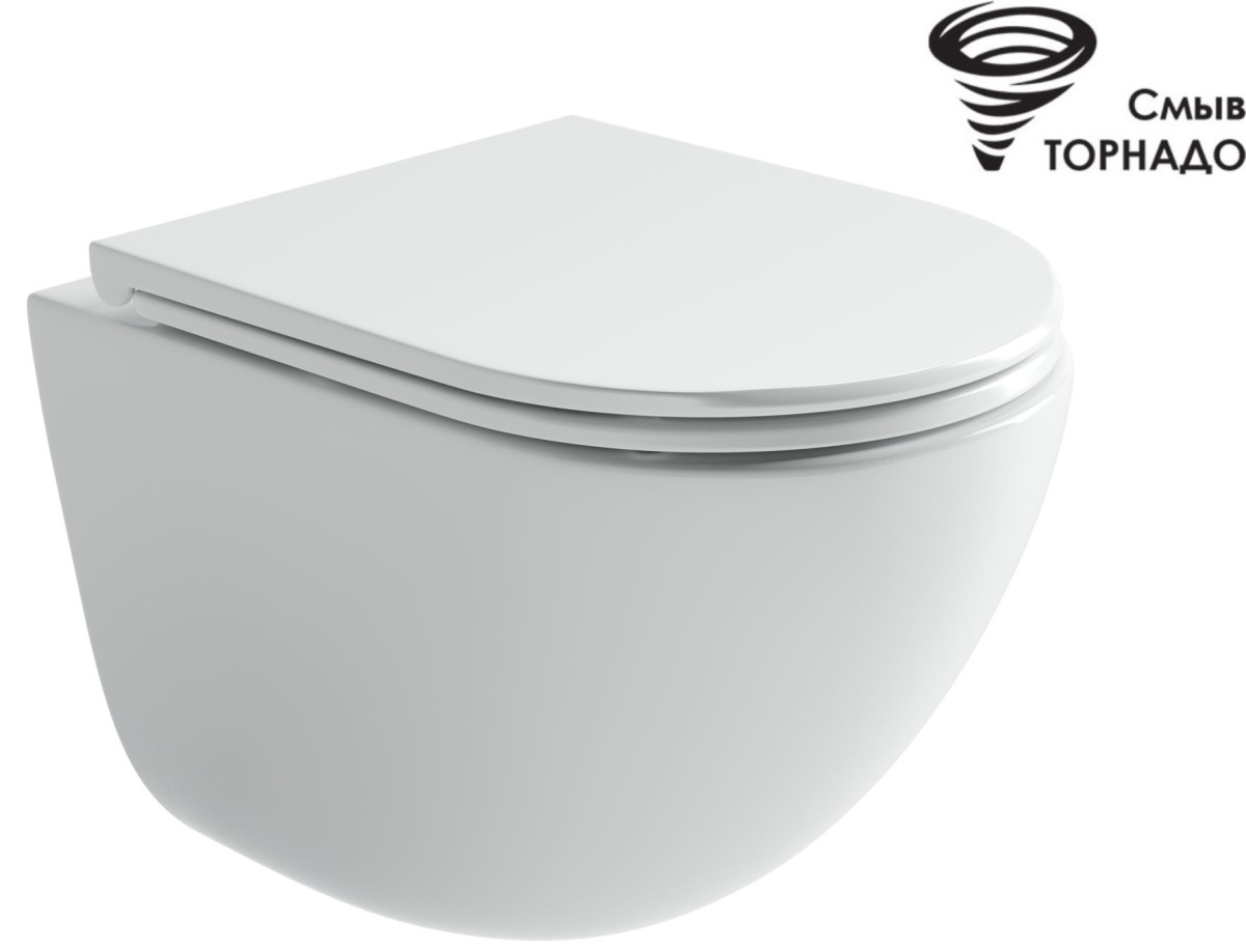 Унитаз подвесной безободковый Ceramicanova VOGUE CN4008T, смыв Торнадо, с крышкой-сиденьем, белый