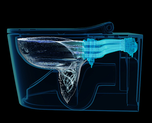 Разработанный на основе принципа ламинарного потока, QuantumFlush предназначен для очистки путем распределения воды самым мощным способом, без брызг и шума по всей внутренней поверхности унитаза. Согласно аккредитованным лабораторным испытаниям, QuantumFlush имеет на 8,45 дБА меньше звуковой мощности, чем обычный унитаз. 8,45 дБА означает, что он производит примерно в 7 раз меньше шума.