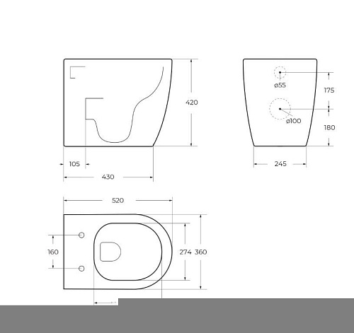 Унитаз приставной BelBagno Marino BB105CBR/BB865SC