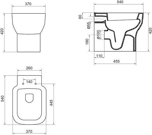 • Жесткая крышка-сиденье из дюропласта с механизмом Soft Close