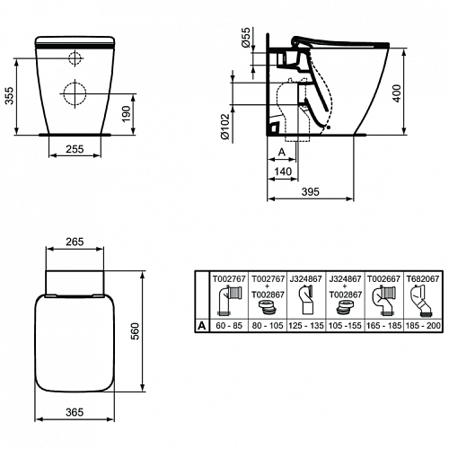 Унитаз-соло Ideal Standard T359801 Strada II напольный/приставной 37х56 см с сидением-крышкой, AquaBlade®, Euro White (евробелый)