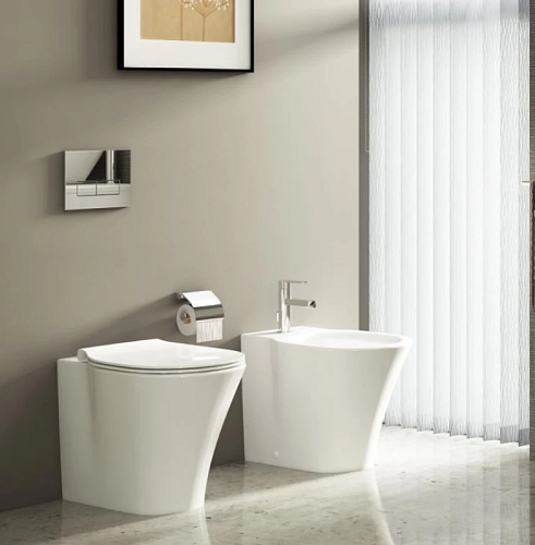 CONNECT AIR AquaBlade® Напольный пристенный унитаз соло (чаша), горизонтальный выпуск (может дополняться пластиковыми выпускными патрубками на 90), глубокий смыв, сидение и крышка заказывается дополнительно, с крепежом.
