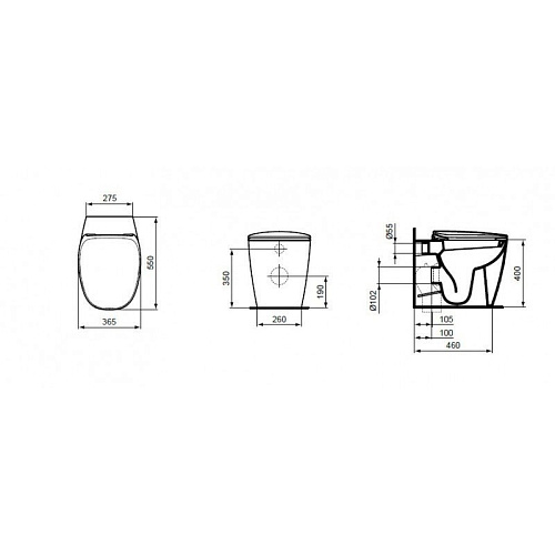 Унитаз-соло Ideal Standard T349101 Dea напольный/пристенный 37х55 см с сидением-крышкой, AquaBlade®, белый