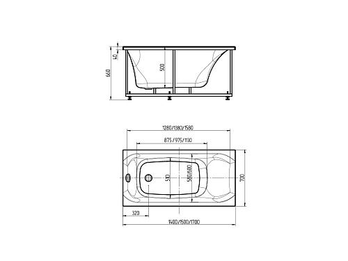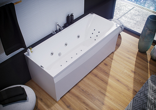 Оснащение • Ванна без гидромассажного оборудования • Каркас • Слив-перелив • Фронтальный экран в комплект не входит и приобретается отдельно