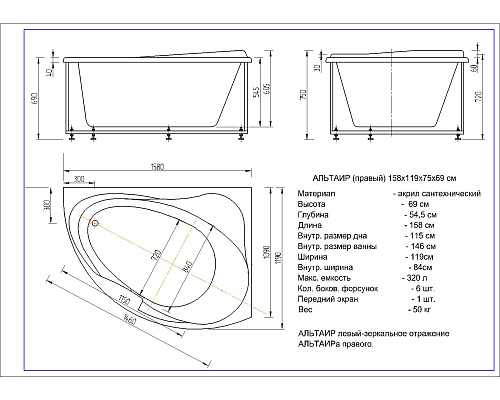 Ванна акриловая Aquatek Альтаир ALT160-0000008