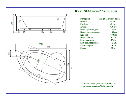 Ванна акриловая Aquatek Аякс 2 AYK170-0000005