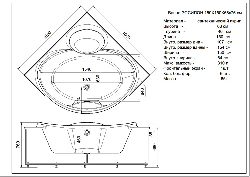Ванна акриловая Aquatek Эпсилон EPS150-0000004