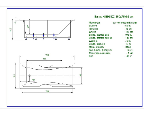 Ванна акриловая Aquatek Феникс FEN160-0000035 купить по доступной цене