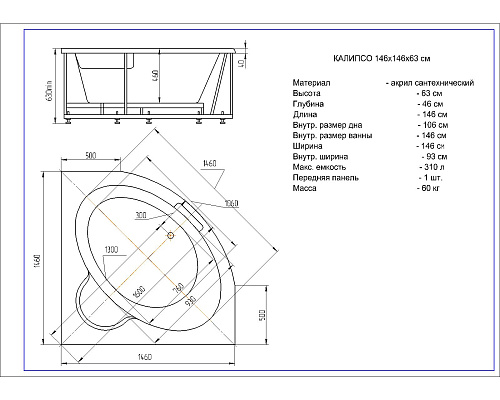 Оснащение • Ванна без гидромассажного оборудования • Вклеенный каркас • Слив-перелив • Фронтальный экран в комплект не входит и приобретается отдельно