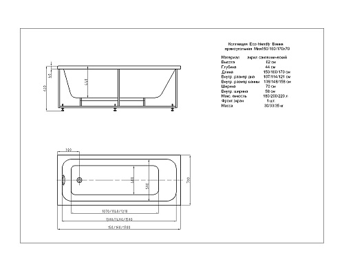 Ванны серии EcoFriendly являются идеальным решением для тех, кто ищет максимально простую и недорогую ванну, не желая при этом терять в качестве. Ванны EcoFriendly поставляются в разобранном виде, что позволяет существенно экономить, покупая только необходимые элементы для своего комплекта, и без доплаты за заводскую сборку. Ванны Aquatek серии EcoFriendly изготовлены из 100% акрилового листа толщиной 3,2 мм. Дно акриловых ванн EcoFriendly дополнительно усилено толстым листом ДСП. Конструкция является надежной и долговечной. Для монтажа ванн серии EcoFriendly можно использовать, по своему выбору, универсальную опору или сборно-разборный алюминиевый каркас-шпильку. Оба варианта монтажа являются одинаково-прочными конструкциями и рассчитаны на все предполагаемые нагрузки на ванну и регулируются по высоте.