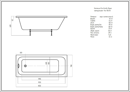 Оснащение • ванна акриловая • каркас (или Универсальная опора), слив-перелив, фронтальный и боковой экраны в комплект не входят и поставляются отдельно • установка гидромассажного оборудования не предусмотрена
