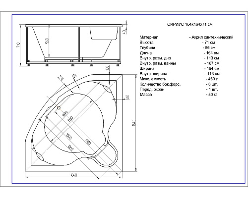Ванна акриловая Aquatek Сириус SIR164-0000004