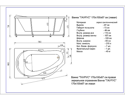 Ванна акриловая Aquatek Таурус TAR170-0000147 купить по доступной цене