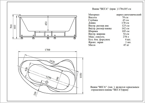 Ванна акриловая Aquatek Вега VEG170-0000084