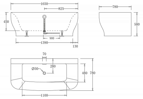 Ванна акриловая BelBagno BB74-1650 купить по доступной цене