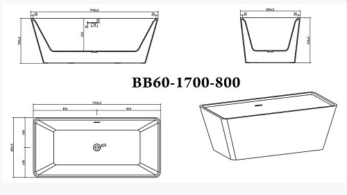 Ванна акриловая Cezares AMALFI BB60-1700-800