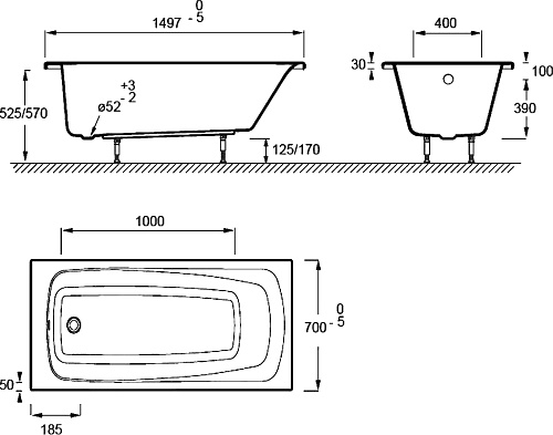 Ванна акриловая Jacob Delafon Patio E6810RU-00 купить по доступной цене