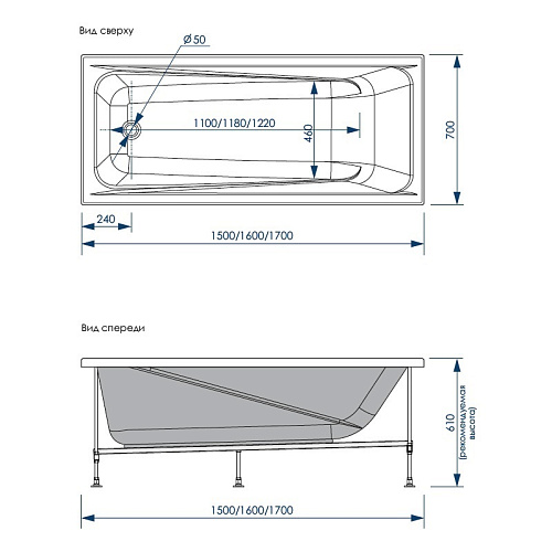 Оснащение Душевая лейка, каскадный набор воды, подголовник, сифон, слив-перелив, смеситель.
