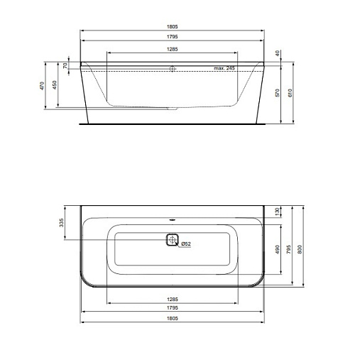 Ванна Ideal Standard Е399601 Tonic II акриловая пристенная 180х80 см, белый купить по доступной цене