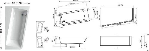 Аксессуары: передняя панель, сточные комплекты различных типов.