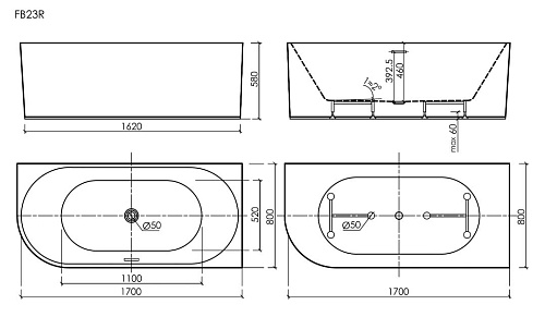 Тип товара Ванна акриловая, угловая