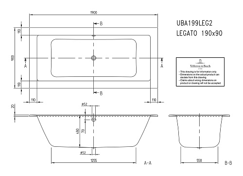 Ванна Villeroy & Boch UBA199LEG2V-01 Legato акриловая, альпийский белый