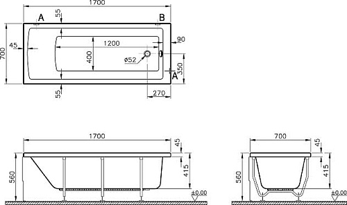 Ванна Vitra 52530001000 Neon акриловая 170х70 см, белая