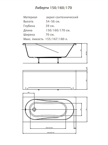 Ванна Aquatek BER150-0000001 Либерти акриловая Lifestyle 150х70 см, белая