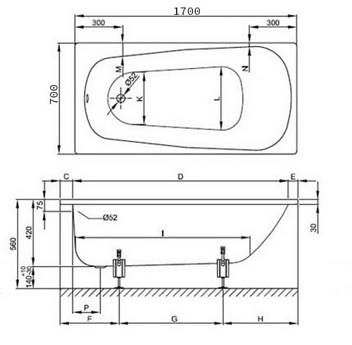 Размеры,см 170*70