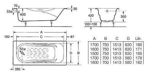 Ванна чугунная Roca Malibu 233360000 купить по доступной цене