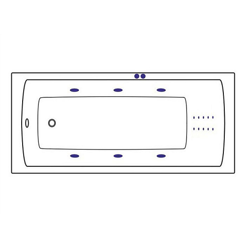 Комплект поставки включает в себя: - Ванна на каркасе, со сливом-переливом; - Гидромассажная система (6 форсунок MIDI-JET); - Массаж спины (10 форсунок NANO); - Пневматическое управление (пневмокнопка вкл/выкл, регулятор подачи воздуха в систему).