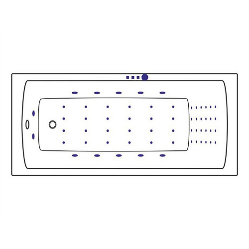 Комплект поставки включает в себя: - Ванна на каркасе, со сливом-переливом; - Гидромассажная система (10 форсунок MICRO-JET) с функцией "Пульсирующий режим"; - Массаж спины (24 форсунок NANO-JET); - Аэромассажная система (24 форсунок NANO-JET) с функцией регулировки интенсивности массажа; - Автоматическая продувка аэромассажной системы; - Массаж ступней (2 форсунки MICRO-JET); - Сенсорное управление на 3 функции с датчиком уровня воды (защита от сухого пуска); - Кран-баланс (регулировка системы массажа спины); - Хромотерапия с функцией "Стоп" (7 режимов работы).