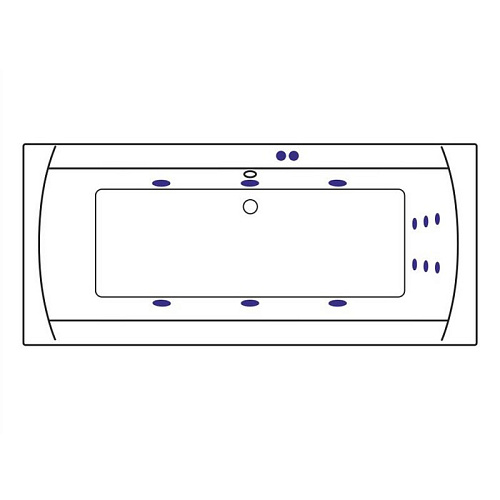Комплект поставки включает в себя: - Ванна на каркасе, со сливом-переливом; - Гидромассажная система (6 форсунок MIDI-JET); - Массаж спины (6 форсунок MICRO-JET); - Пневматическое управление (пневмокнопка вкл/выкл, регулятор подачи воздуха в систему