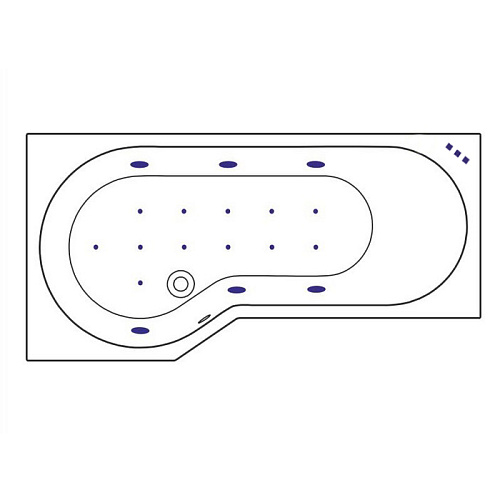 Комплект поставки включает в себя: - Ванна на каркасе, со сливом-переливом; - Гидромассажная система (6 форсунок MIDI-JET) с функцией "Пульсирующий режим"; - Аэромассажная система (12 форсунок AERO-JET) с функцией регулировки интенсивности массажа; - Автоматическая продувка аэромассажной системы; - Сенсорное управление на 3 функции с датчиком уровня воды (защита от сухого пуска); - Хромотерапия с функцией "Стоп" (7 режимов работы).